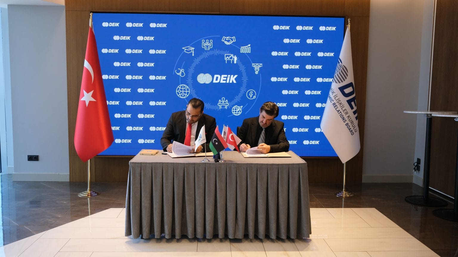 DEİK Türkiye-Libya İş Konseyi ile Libya Ulusal Madencilik Şirketi, Libya Sergiler ve Konferanslar Otoritesi ve Emaar Libya Holding arasında, ikili ticaret hacminin artırılması ve enerji, maden ve altyapı alanlarında işbirliğini artırma hedefiyle iyi niyet anlaşmasına ilişkin İstanbul’da imza töreni düzenlendi.